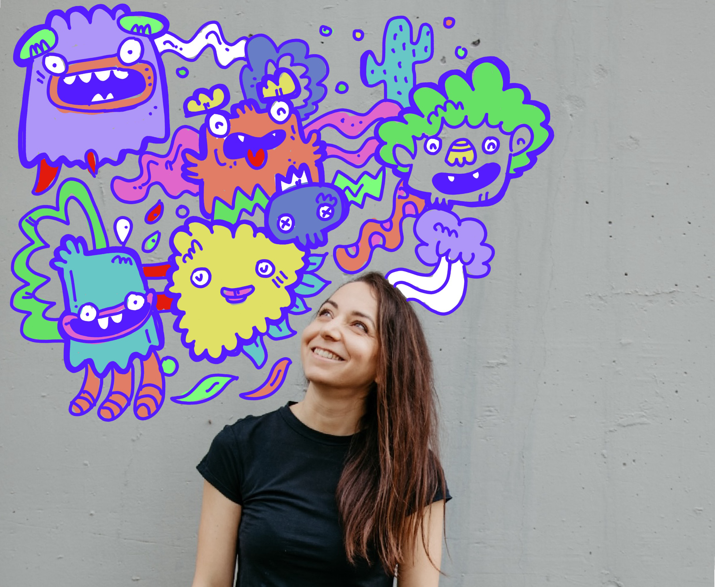 Ich bin eine zeitgenössische Künstlerin an der Schnittstelle von Urban Art und Fine Art. In meiner Arbeit entwickle ich ikonische, farbintensive Figuren – meine „Monster“ –, die Emotionen sichtbar machen und eine direkte Verbindung zum Betrachter schaffen.